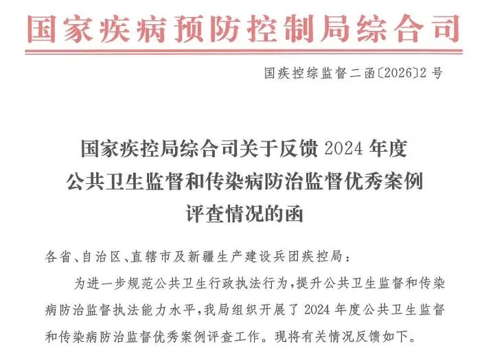 近日,国家疾控局公布了2024年度公共卫生监督和传染病防治监督优秀案例评查结果,我市报送的1起案件凭借事实认定清晰、法律适用准确、调查取证全面、办案功底扎实等突出优势,成功入选“2024年度全国公共卫生监督执法优秀案例”。