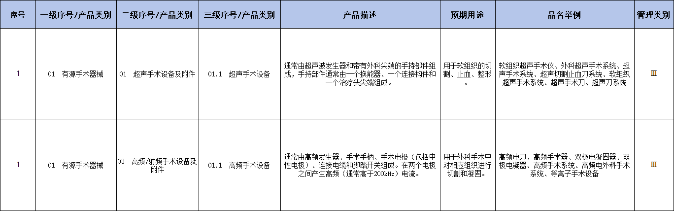 (摘自 国家药监局《医疗器械分类目录》)
