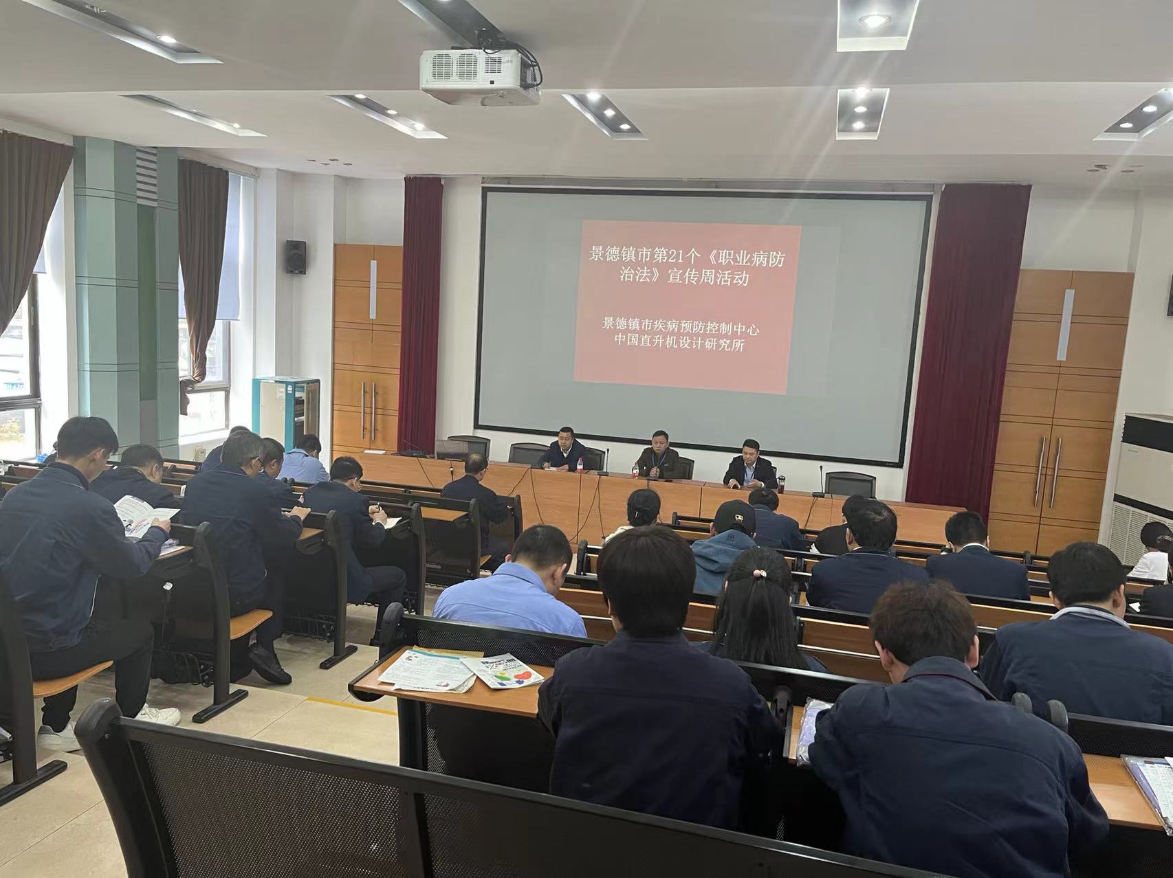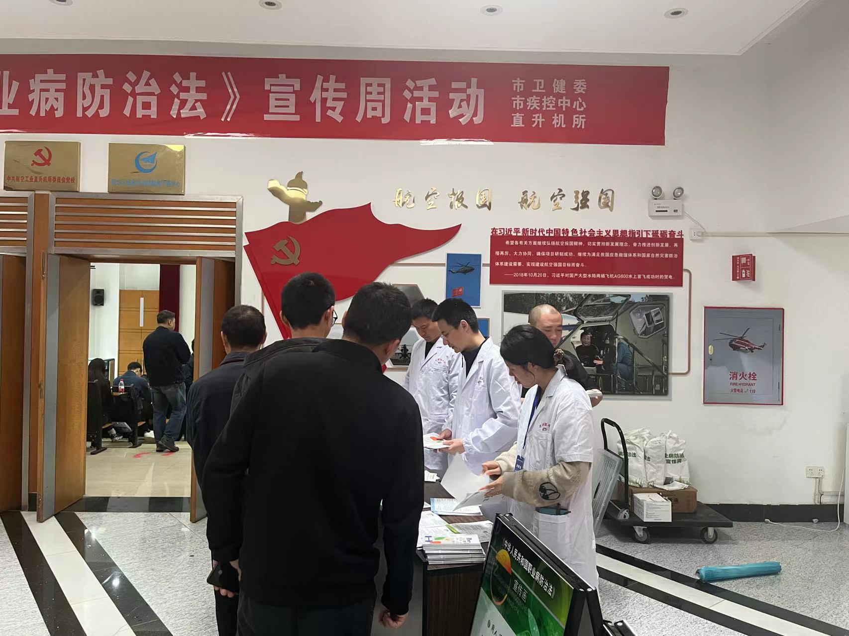 4月25日,是景德镇市疾控中心《职业病防治法》宣传周系列活动了第二天,上午,在党总支书记邵群的带领下,市疾控中心职业卫生技术人员一行来到中国直升机设计研究所,开展职防法宣传周活动。