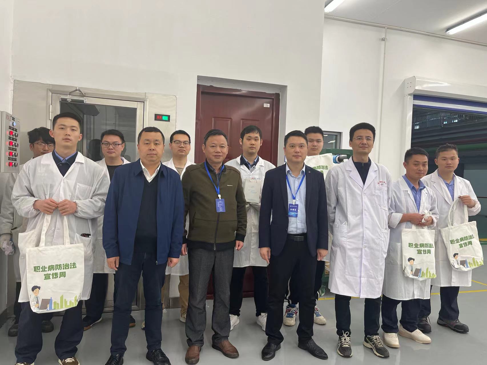 最后,市疾控中心党总支书记邵群带领技术人员下车间开展了宣传活动,为车间职工提供现场咨询服务,并发放职业病防治相关的宣传资料和防护用品。