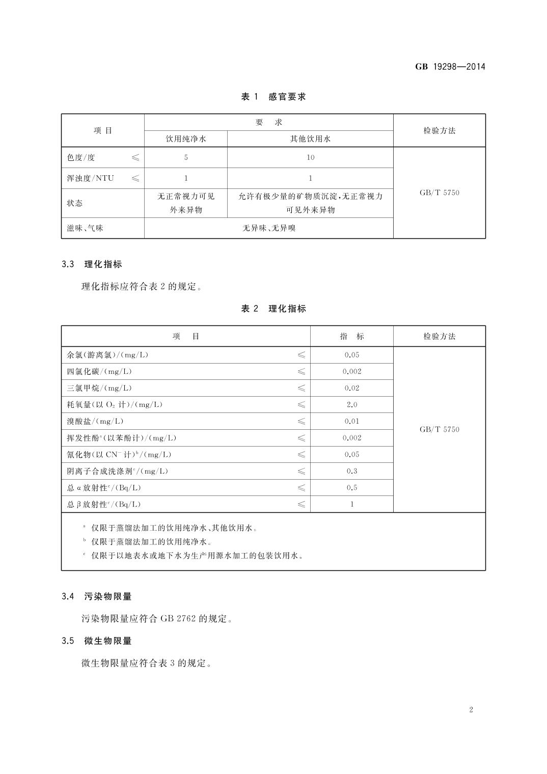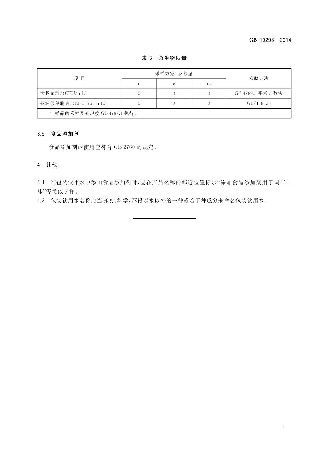 食品安全国家标准包装饮用水【GB19298-2014】