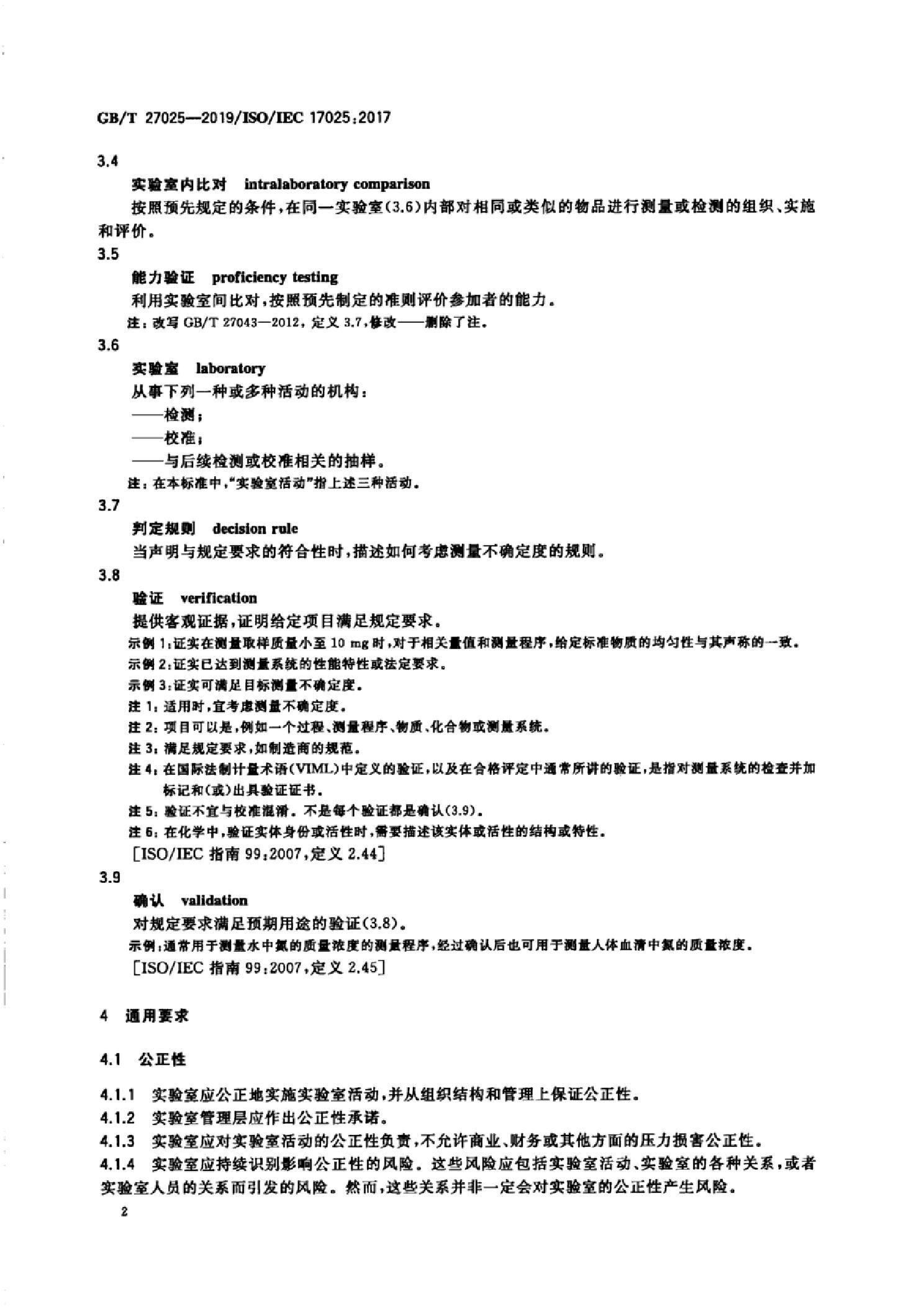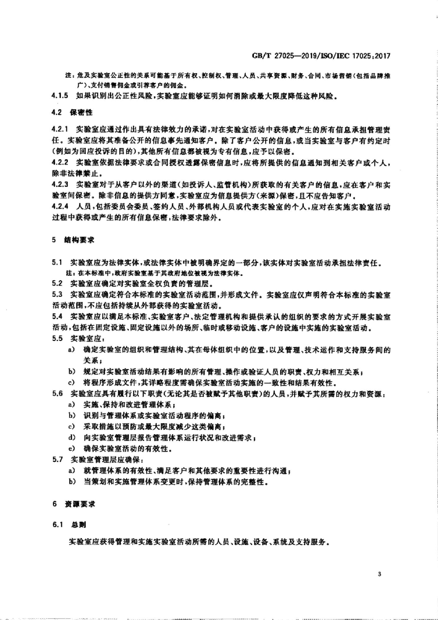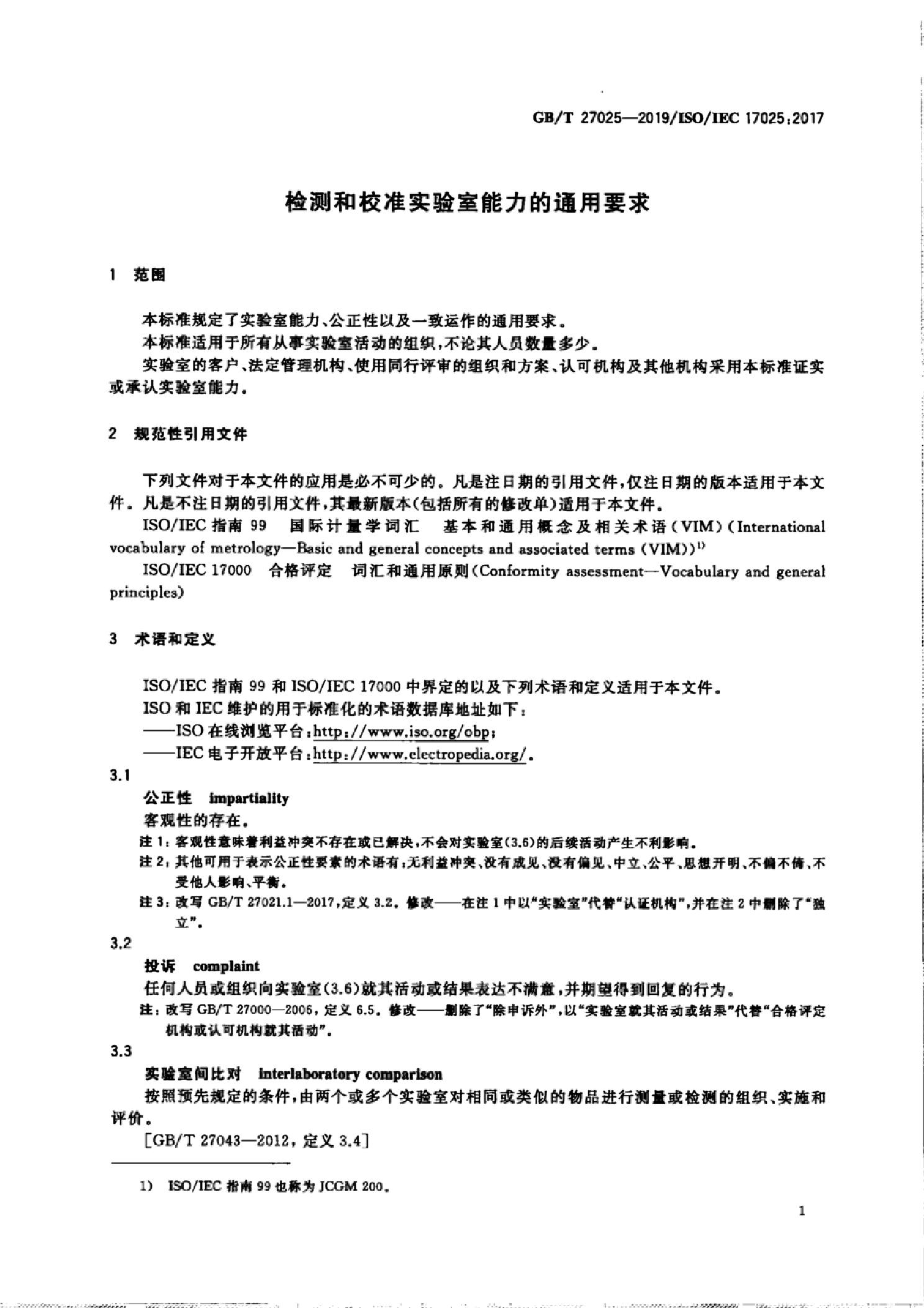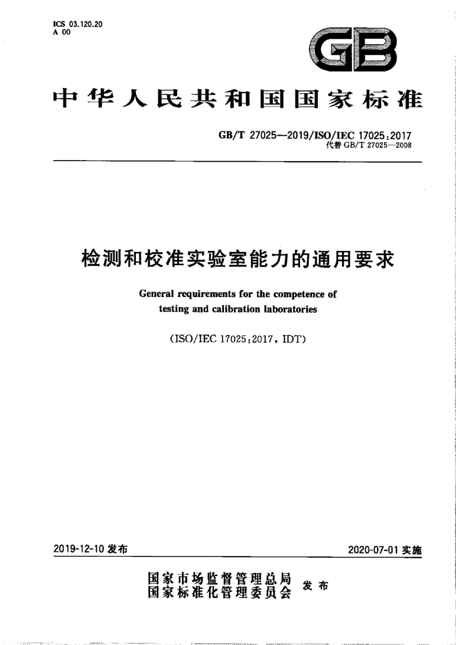 检测和校准实验室能力的通用要求【GB/T 27025-2019】