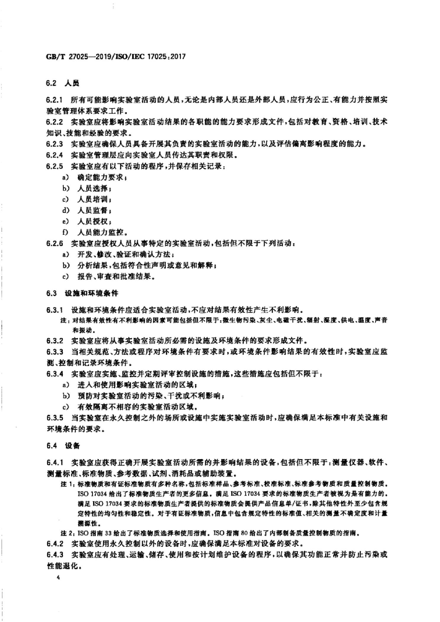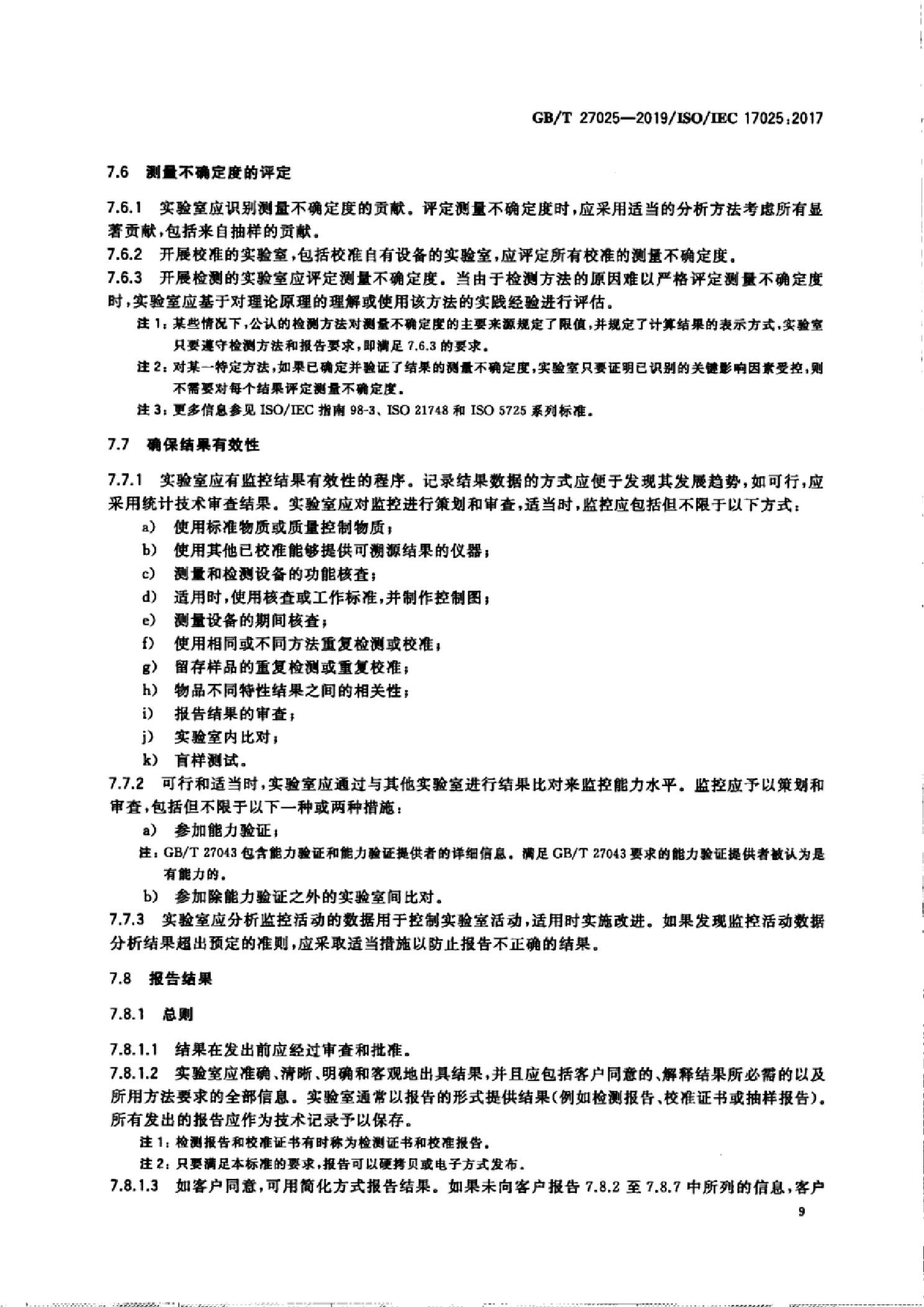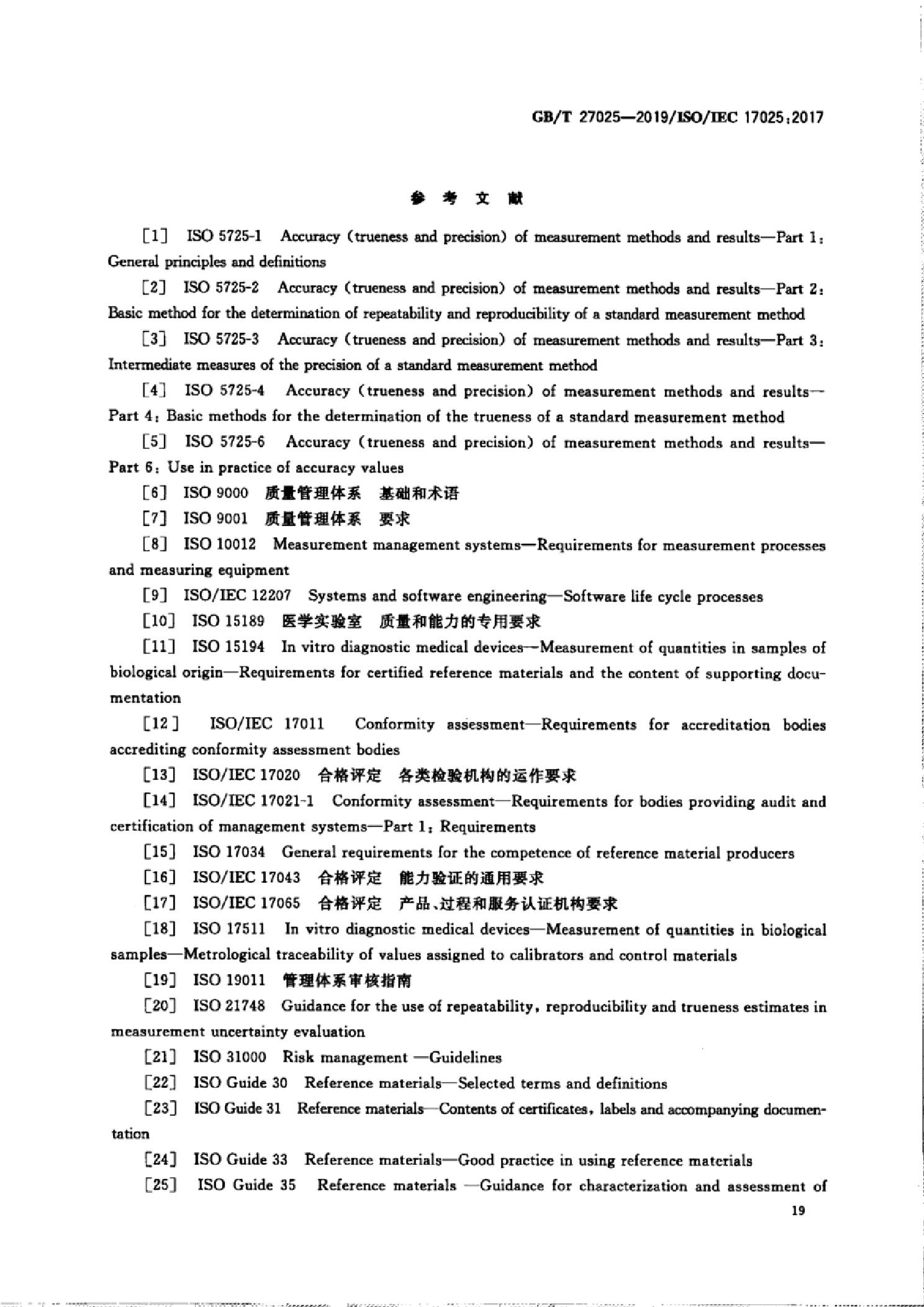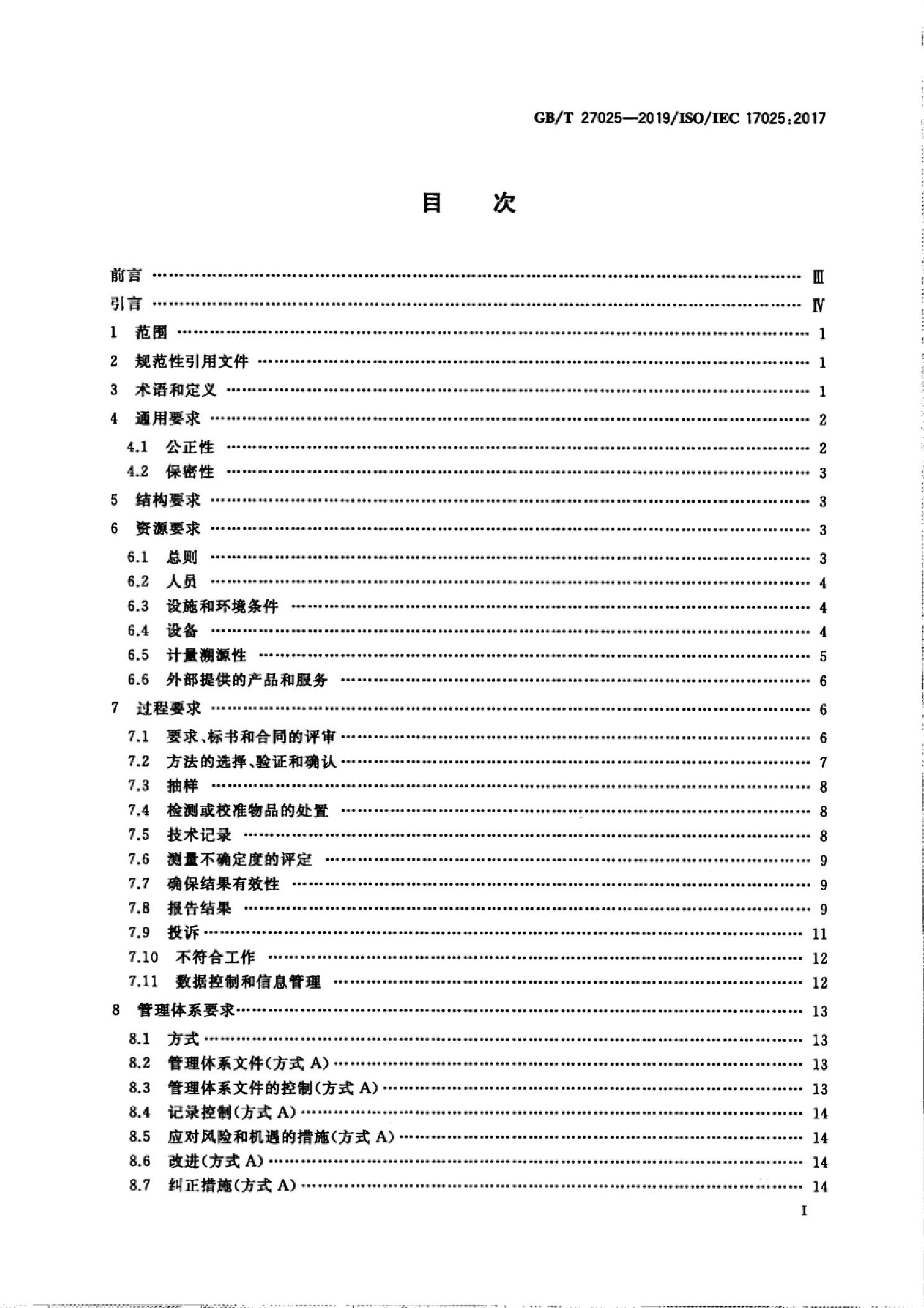 检测和校准实验室能力的通用要求【GB/T 27025-2019】