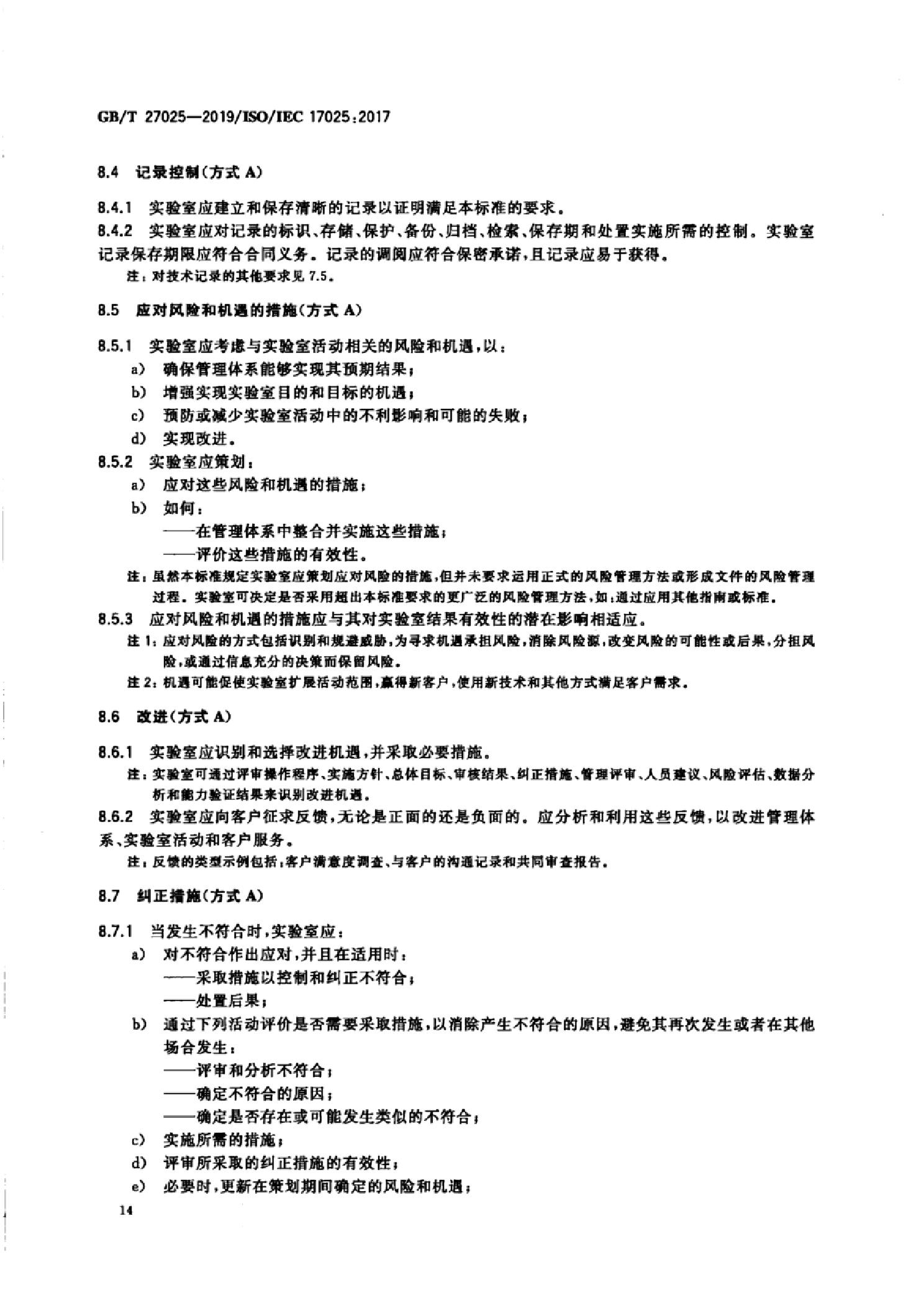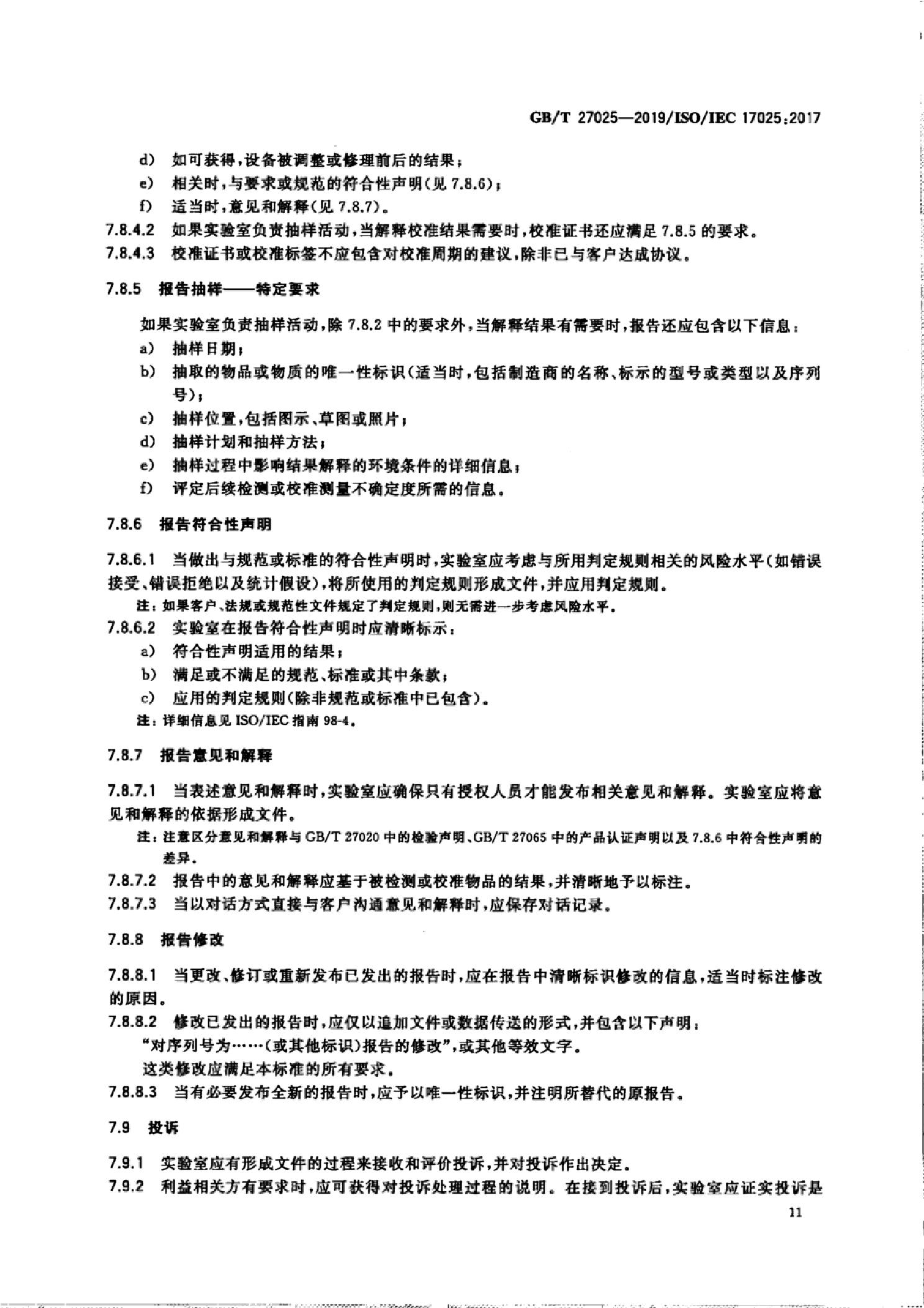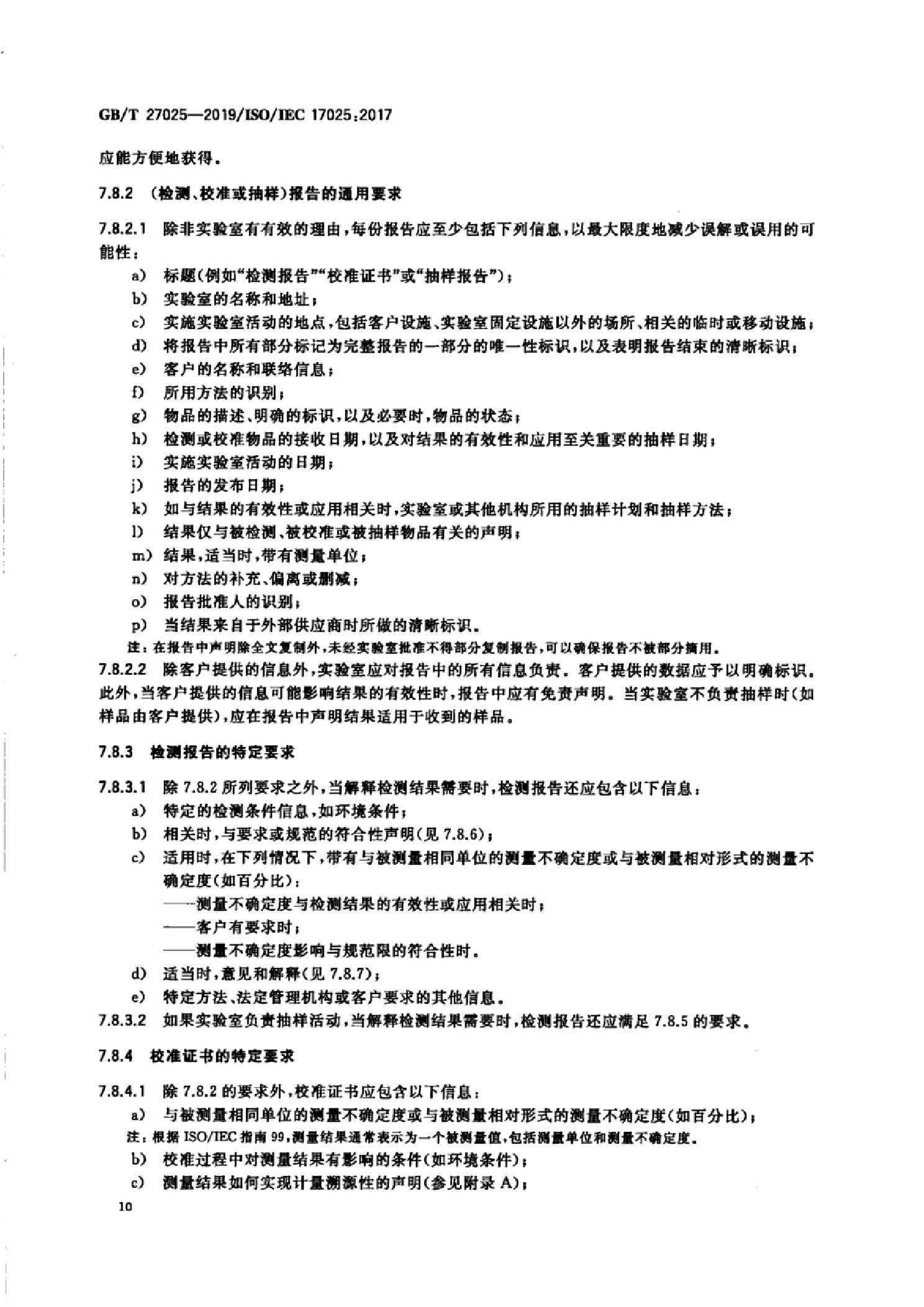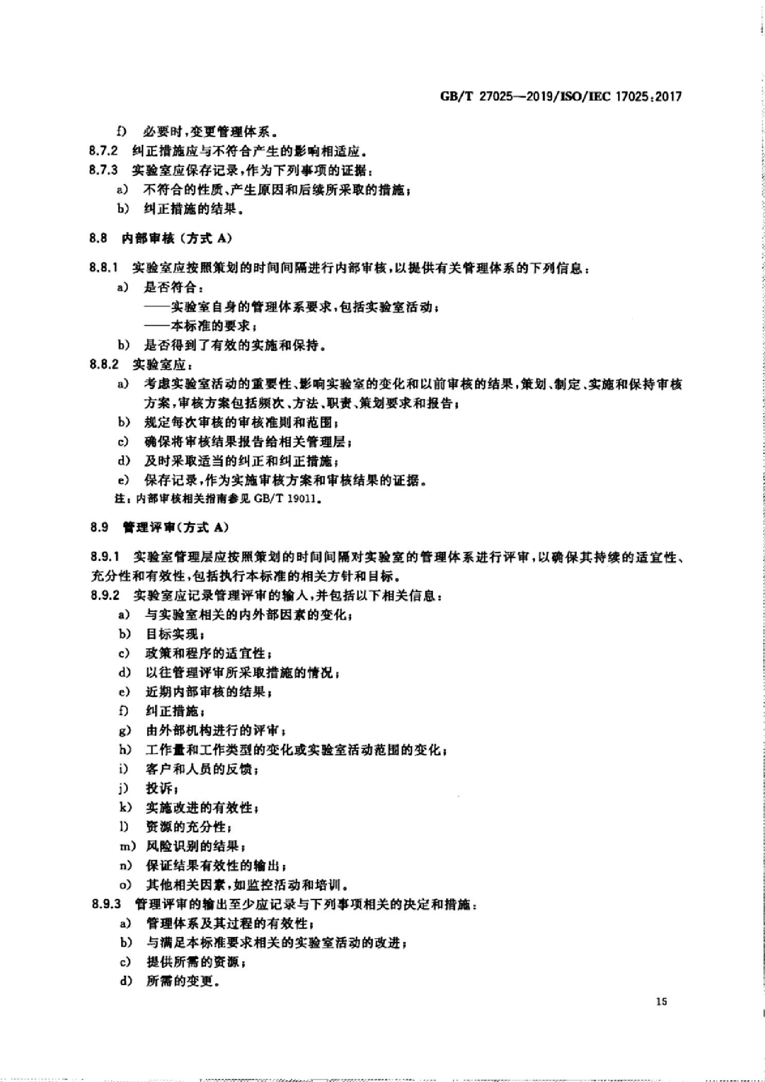 检测和校准实验室能力的通用要求【GB/T 27025-2019】